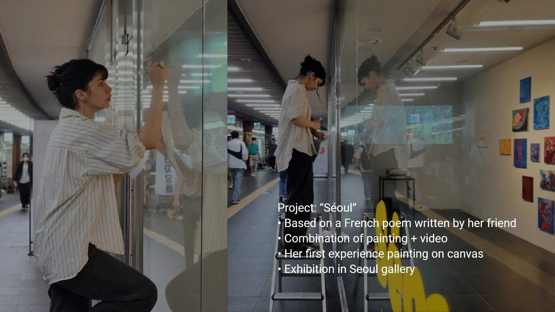 The most memorable experience was our joint project, 'Séoul', which culminated in an exhibition at a gallery in Seoul. We began the video work based on a French poem her friend wrote to comfort her during a difficult time.
