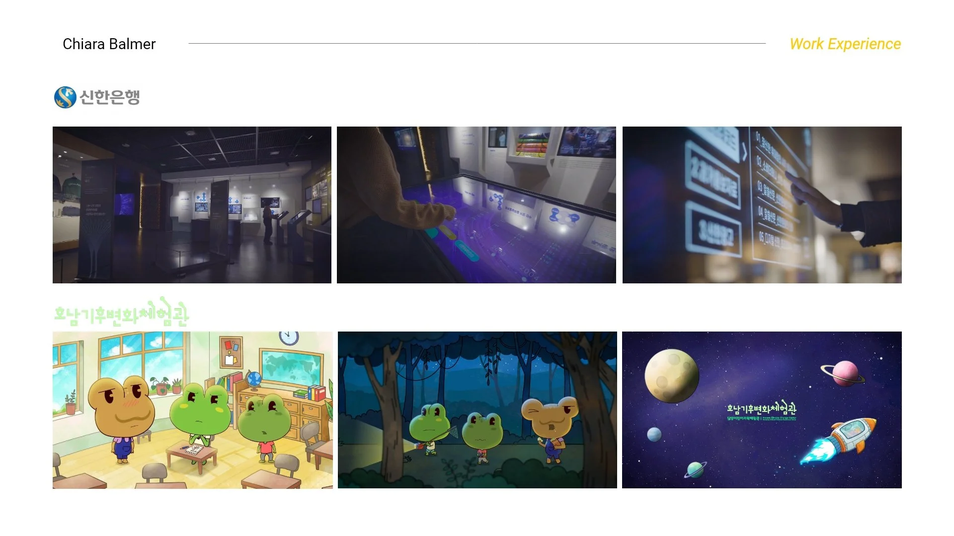 키아라의 합류는 매너리즘에 빠져있던 저에게 상상치 못한 새로운 자극이었고, 다른 배경을 가진 그녀와의 협업은 즐거운 도전이었습니다. 인턴십 초기, 낯선 환경과 언어 장벽으로 어려움이 있었지만, 키아라는 신한 박물관 홍보 영상 제작이나 대구 박물관의 한국 전통 그림 애니메이션 작업 등 다양한 클라이언트 프로젝트에 참여하며 빠르게 적응하고 성장했습니다.